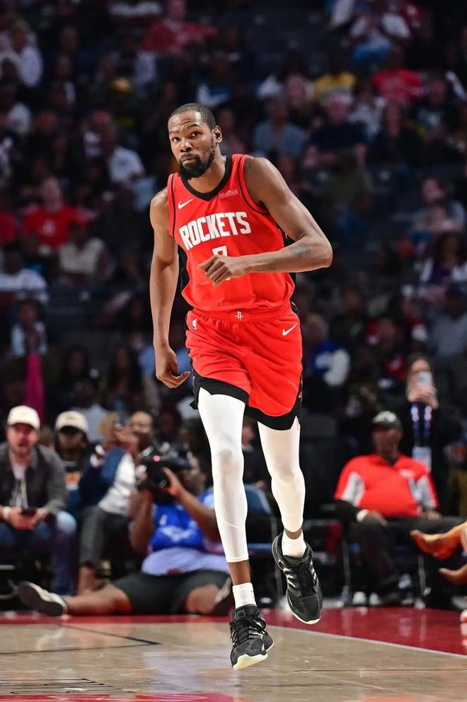 火箭看中的,正是他无可替代的 “硬解能力”。这支球队虽有 5 年 1.85 亿续约的内线核心申京,也有防守强悍的阿门,但关键时刻缺乏一锤定音的终结者 —— 而杜兰特正是这一角色的完美答案。他能在半场任何位置完成终结,季后赛多次上演的 “死神时刻”,正是火箭冲击冠军最需要的特质。防守端,尽管未进过最佳防阵,但他凭借 2 米 11 的身高与超长臂展,近年在太阳时常客串中锋,这种全能性恰好能弥补火箭内线的轮换短板。