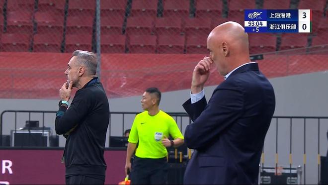 即便是浙江队能够在后场断球,也传不了三脚球,必然会被上海海港轻松化解。比赛的节奏很慢,领先的上海海港也不急于进攻,只是拿球不断地传递,保持充足的体能。中场休息的这段时间,对于浙江队来说,如果球队想要进攻进球,那么必然要在阵容上进行调整。球队进攻端完全没有表现,米特里册、奥乌苏只是用自己的个人能力,发动零星的反击。替补席上还有很多优秀的中前场球员,就看主教练的调整能力了。 下半场回来,浙江队进攻端依旧没有任何的起色,始终被对手牢牢的压制。第50分钟,王燊超后插上,轰出一脚漂亮的世界波,2:0!扩大领先后,上海海港继续保持高压攻势,如此被动局面下,浙江队仍然不做人员调整。一直到第60分钟,奥乌苏的头球稍稍高出横梁,才算完成了第一次威胁的攻势。直到第68分钟,浙江队才做出换人调整,但是却将米特里策换下。仅仅3分钟后,卢卡斯禁区前犯规,送给对手一个位置非常好的定位球,维塔尔直接射门得手,3:0!上海海港锁定胜局。