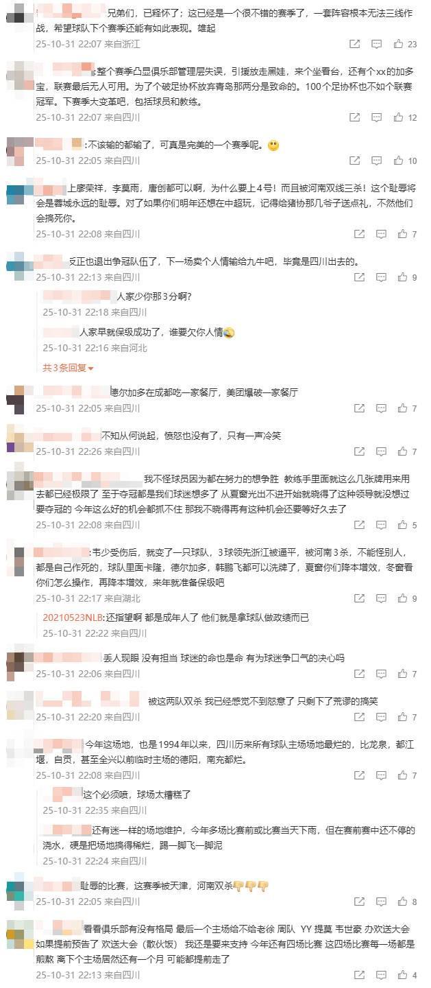 成都12不敌河南无缘夺冠,赛后官微大量球迷留言表示失望