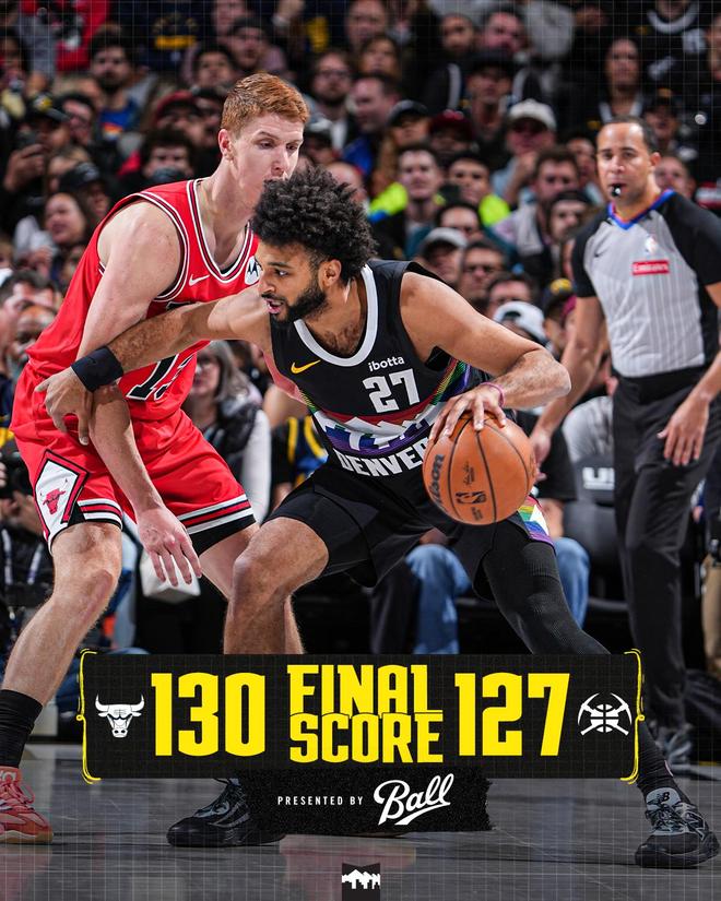- NBA | NBA战报:公牛130127险胜掘金,约基奇空砍36分