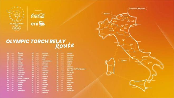 - 体育战报 | 米兰冬奥会火炬传递路线公布,将穿越意大利20个大区110个省份