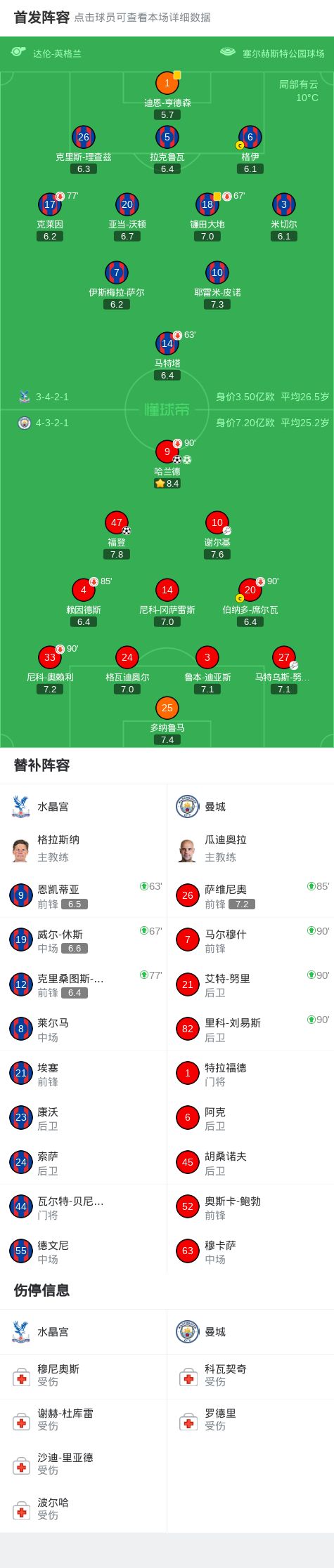 剑南春曼城30客胜水晶宫,哈兰德梅开二度,福登贴地斩
